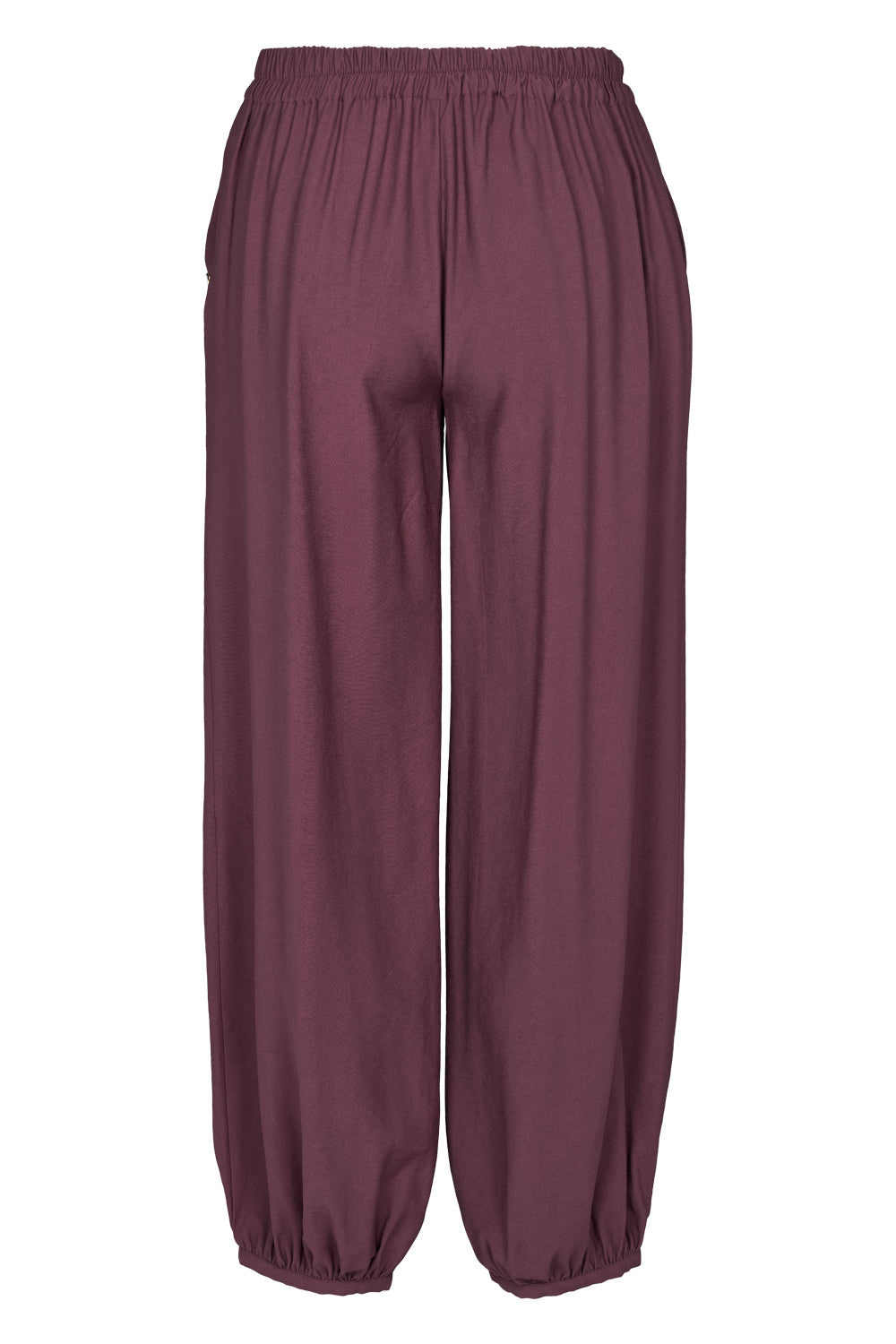 Svala Pants har et enkelt og afslappet udtryk med fokus på komfort. Bukserne har elastik i siderne og bag på taljen, som giver en behagelig pasform. Benene er lange og løstsiddende med let vidde, hvilket giver et blødt fald, mens elastik ved anklerne skaber en let ballon-effekt. Bukserne har praktiske sidelommer, som er diskret integreret i designet.
